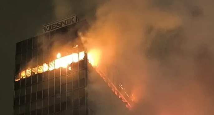 Požar je zahvatio više spratova zgrade “Vjesnika”, čime je pričinjena imovinska šteta velikih razmjera.