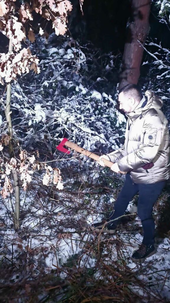 Gradonačelnik Doboja Boris Jerinić sjekao je jutros badnjaka u dobojskom naselju Mala Bukovica.