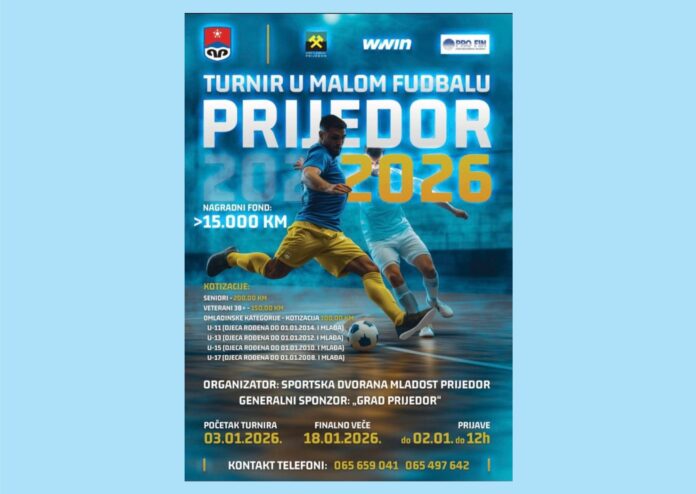 Prijedor će početkom 2026. godine biti u znaku malog fudbala. Tradicionalni turnir u malom fudbalu “PRIJEDOR 2026” počinje 3. januara, a finalno veče biće održano 18. januara. Organizator turnira je Sportska dvorana “Mladost”, pod pokroviteljstvom Grada Prijedora.